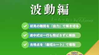 「進行波の式は y = A sin(kx − ωt)」「反射では位相が π ずれる」「ヤングの干渉で経路差は d sinθ」──個別に丸暗記しても、少し設定が変わるだけでどの公式を使えばいいかわからなくなる...